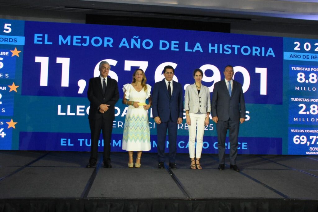 Collado destacó que esta cifra representa un crecimiento de 37.8% respecto a 2022, 13.3% en comparación con 2023 y 4.3% frente al año anterior, consolidando al turismo como uno de los principales motores económicos del país.